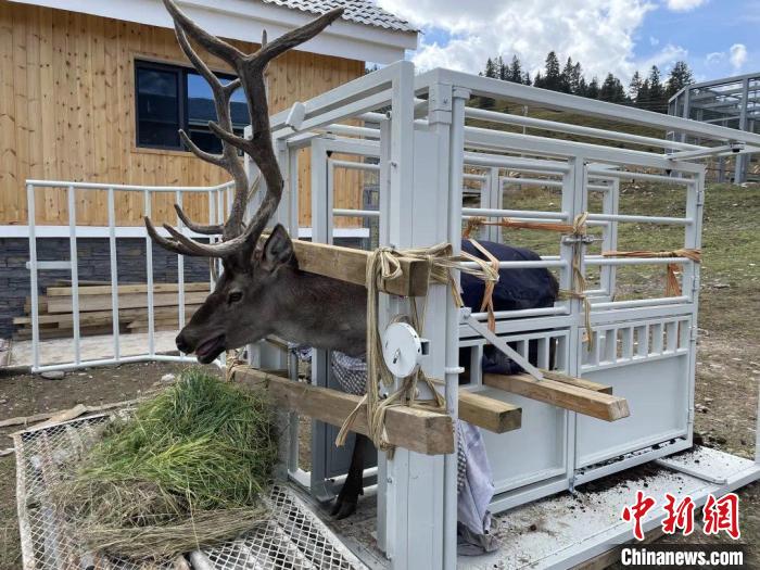 據(jù)現(xiàn)場(chǎng)初步判斷,該馬鹿為雄性個(gè)體,12周歲左右,由于秋季下山采食新鮮嫩草,右前肢和鹿角被網(wǎng)圍欄圍困。工作人員隨即將馬鹿麻醉保定后送至祁連山國(guó)家公園野生動(dòng)物救護(hù)繁育站,工作人員診斷發(fā)現(xiàn)馬鹿在掙脫過程中右前肢脫臼,無(wú)法站立。為避免長(zhǎng)期側(cè)躺導(dǎo)致瘤胃發(fā)酵、食欲廢絕,病情進(jìn)一步惡化,救護(hù)繁育站、森林公安干警全體人員將其安置在草食動(dòng)物保定架,后續(xù)將按照病情體征變化的情況,積極采取有效的醫(yī)療措施,促使恢復(fù)正常。
