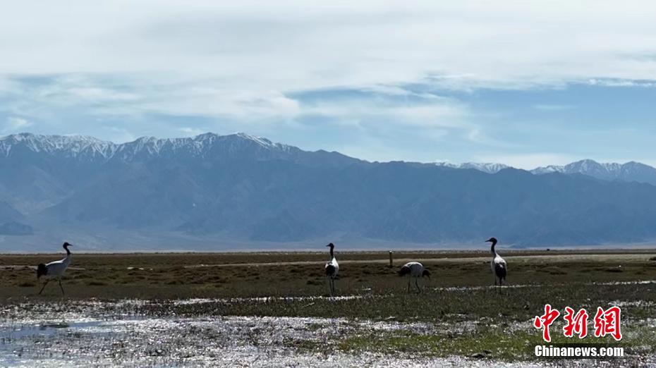 柴達木盆地烏蘭東大灘濕地現(xiàn)“鳥類大熊貓”黑頸鶴