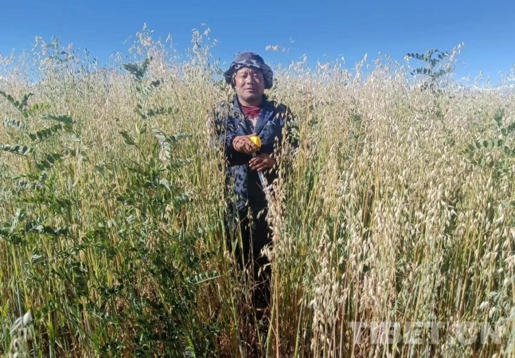 “今年,海拔3990米的林芝市工布江達(dá)縣示范點(diǎn)西藏蕃騰農(nóng)牧生態(tài)有限公司基地?fù)屖找荒晟潭够觳デ喔刹?80噸、夢龍燕麥種子2噸;海拔4500米的阿里地區(qū)噶爾縣示范點(diǎn)阿里草原站基地是貝勒2號(hào)和箭筈豌豆混播,搶收青干草畝產(chǎn)突破1噸;海拔4660米的拉薩市當(dāng)雄縣示范點(diǎn)格達(dá)鄉(xiāng)甲朵村基地村集體是青海444燕麥和甜燕麥混播,搶收青干草28噸;海拔3800米的日喀則市桑珠孜區(qū)示范點(diǎn)邏瑪奶牛場搶收青飼玉米24噸;位于拉薩市的海拔3760米的核心試驗(yàn)點(diǎn)曲尼帕試驗(yàn)基地種子擴(kuò)繁點(diǎn)的數(shù)據(jù)正在匯總分析……”談及今年各示范點(diǎn)的數(shù)據(jù),多吉頓珠如數(shù)家珍。