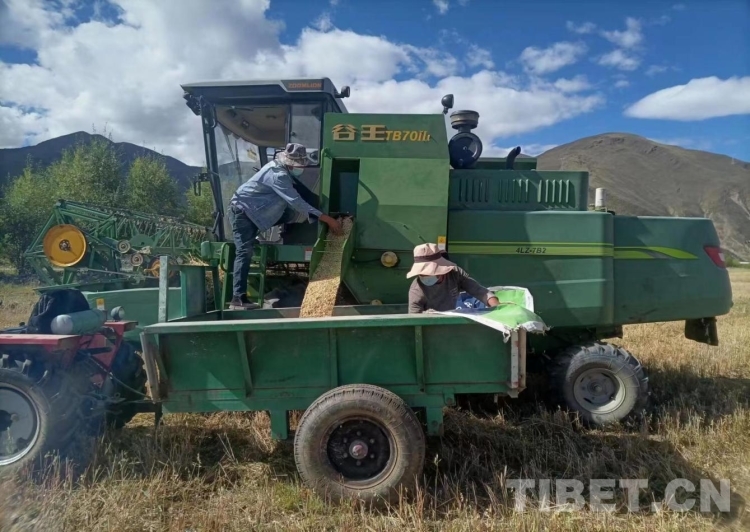 圖為國家牧草產(chǎn)業(yè)技術(shù)體系拉薩綜合試驗(yàn)站曲尼帕基地燕麥種子秋收搶收工作(海拔3760米)