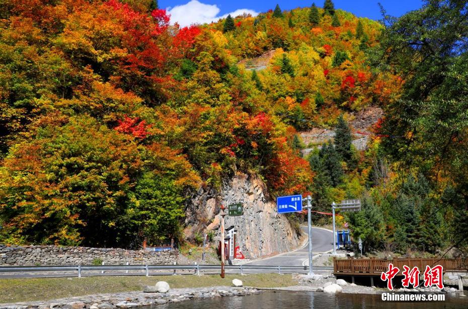 大紅、金黃、橙黃、墨綠、淺藍......秋意漸濃,輕風(fēng)把四川阿壩州黑水縣3000多平方公里的林濤樹海慢慢渲染,從谷底到山巔,千樹萬葉將躍動的生命燃燒,留下最絢麗的身影,冰山彩林交相輝映;彩林湖泊浮光掠影,一派“樹樹皆秋色,山山似落暉”的壯美。黑水冰山彩林、卡龍溝彩林、奶子溝彩林等彩林區(qū)游覽面積達3000多平方公里,因面積大、色彩豐富而享有“亞洲之最”的美譽。圖為色彩斑斕的黑水彩林。 黑水縣委宣傳部 供圖