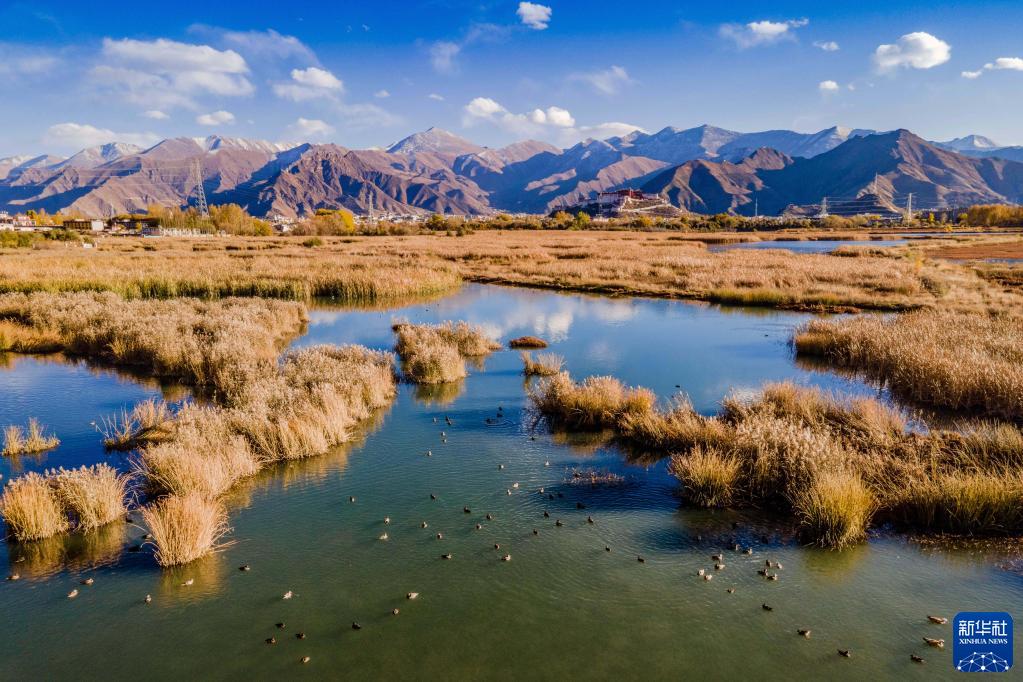 這是11月5日拍攝的拉魯濕地景色(無人機(jī)照片)。新華社記者 周荻瀟 攝