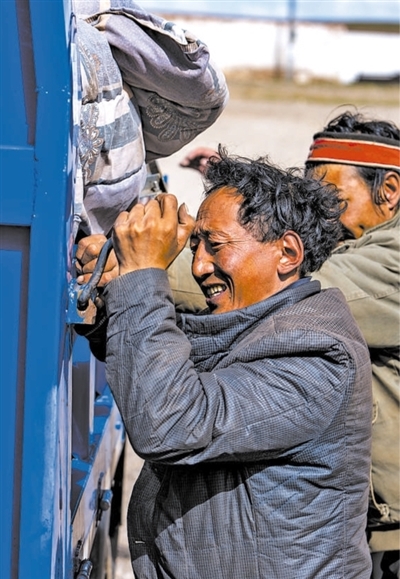 那曲市安多縣幫愛鄉(xiāng)群眾將家具裝車。