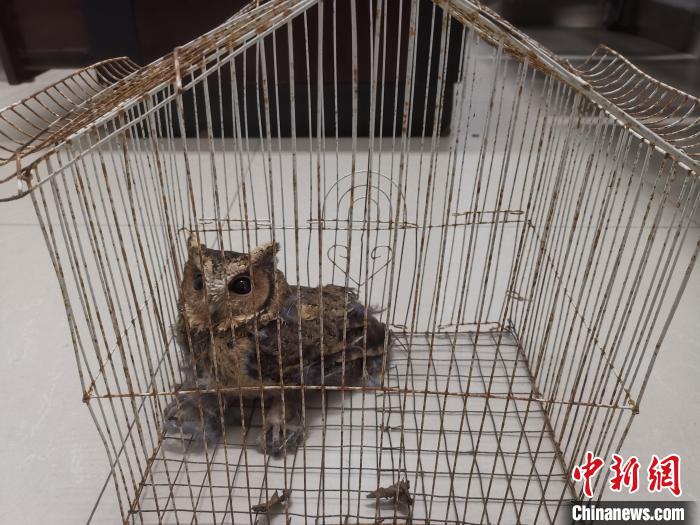圖為受到救助的領(lǐng)角鸮。 西雙版納邊境管理支隊(duì)供圖