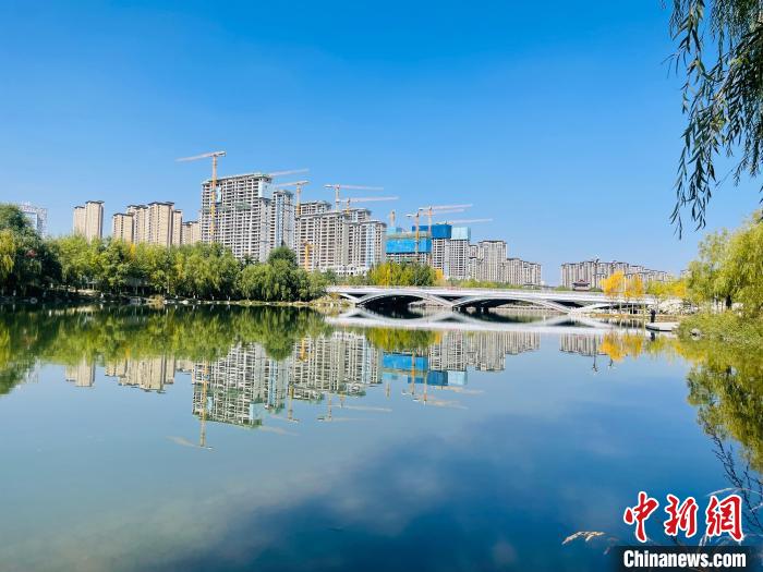 圖為西寧市北川濕地公園河水碧波蕩漾。 孫?!z