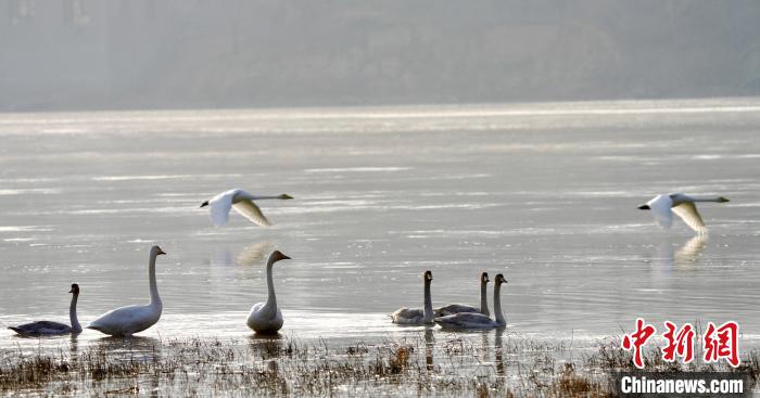 圖為青海省海東市化隆縣黃河流域的天鵝。 李玉峰 攝