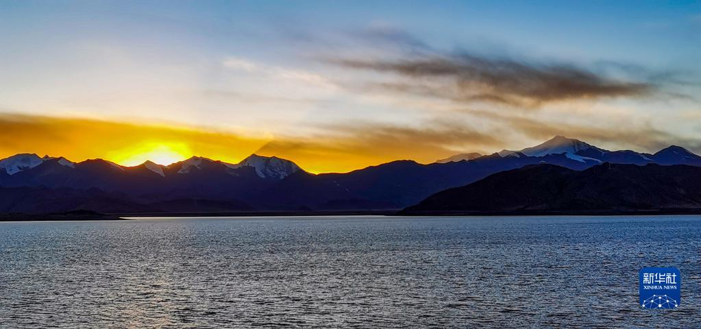 這是夕陽(yáng)下的羊卓雍錯(cuò)(1月1日攝)。新華社記者 姜帆 攝