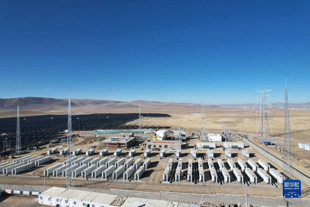 在平均海拔約4500米的西藏自治區(qū)那曲市色尼區(qū),寒風(fēng)呼嘯,工人們干勁十足。藍(lán)天白云下,陽(yáng)光灑在一排排光伏板上,儲(chǔ)能系統(tǒng)與電網(wǎng)塔基開始送電,成為藏北草原的“活力動(dòng)能”。