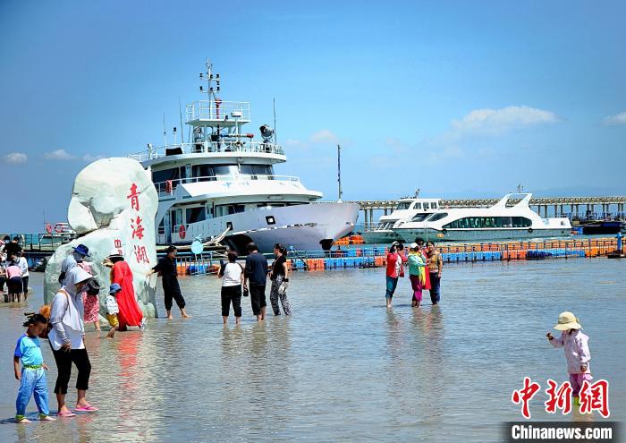 資料圖為游客在青海湖畔水中玩耍?!∑钤鲚?攝