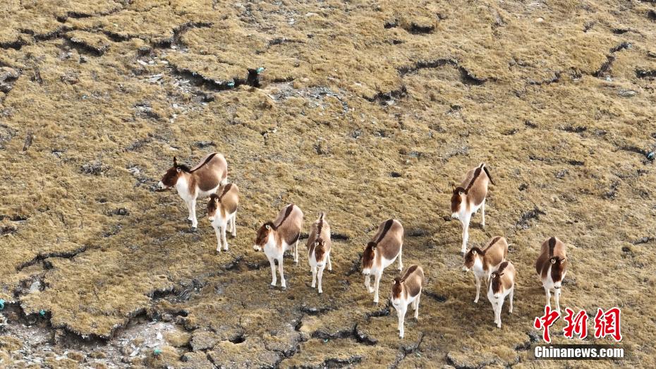 高原初春,馬鹿、藏野驢、藏狐等野生動物在祁連山國家公園青海片區(qū)天峻縣境內(nèi)草場上覓食、棲息,悠閑自在。青海省海西蒙古族藏族自治州天峻縣大部地處祁連山國家公園青海片區(qū),近年來,該縣開展生態(tài)環(huán)境綜合治理,生態(tài)環(huán)境持續(xù)改善,珍稀野生動物種群數(shù)量不斷增加。圖為航拍成群的藏野驢在天峻縣草場上覓食棲息。