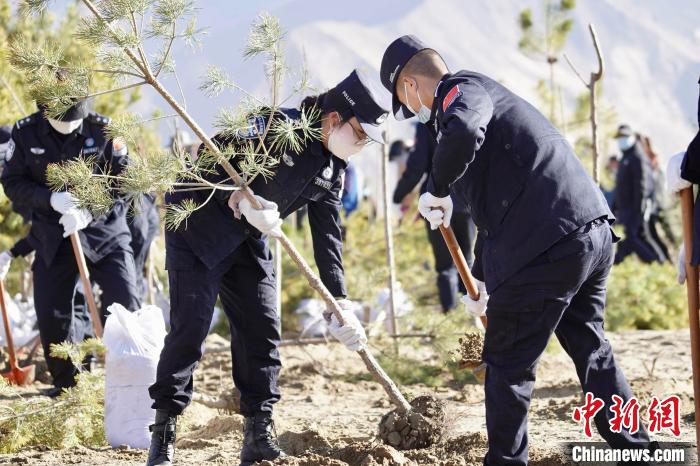 3月16日,民警正在栽植樹苗。 索朗次旺 攝