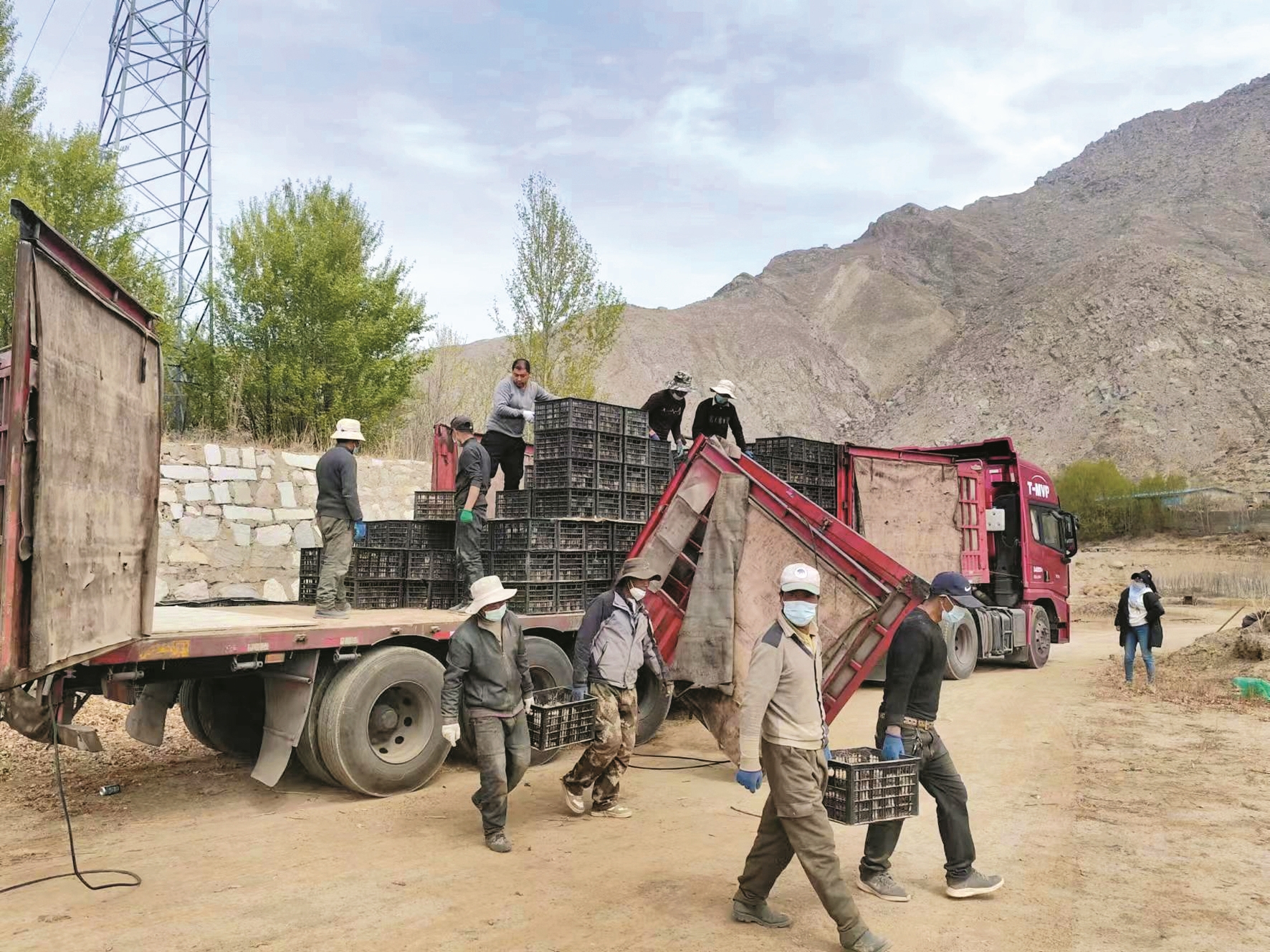 圖為工人在卸酸棗苗。拉薩融媒記者 郝奕凝攝