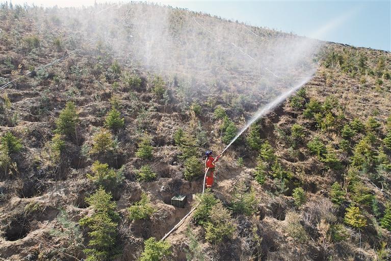 此次演練以拉薩南山公園發(fā)生森林火災(zāi)為背景。大隊(duì)收到訊號(hào)后,立即啟動(dòng)應(yīng)急預(yù)案,組織人員按規(guī)定攜帶防護(hù)及滅火裝備趕赴演練地點(diǎn)。指揮員根據(jù)火場態(tài)勢(shì)迅速制定滅火技戰(zhàn)法,指戰(zhàn)員分工明確、團(tuán)結(jié)協(xié)作,快速在海拔4000米山地串、并聯(lián)架設(shè)水泵32臺(tái)。最終運(yùn)用水泵、水槍、風(fēng)力滅火機(jī)等滅火裝備成功撲滅山火。