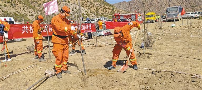 西藏左貢森林消防參加義務(wù)植樹活動