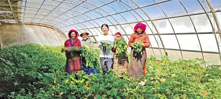 2017年,雙湖縣投建了11座蔬菜大棚。經(jīng)過當?shù)馗刹亢湍撩駛兣Ω藕托量嘣囼?,現(xiàn)在種植的蔬菜瓜果年產(chǎn)量可達4噸,每年給當?shù)啬撩袢罕姲l(fā)放蔬菜分紅和現(xiàn)金分紅共計12萬元左右,857人從中受益。