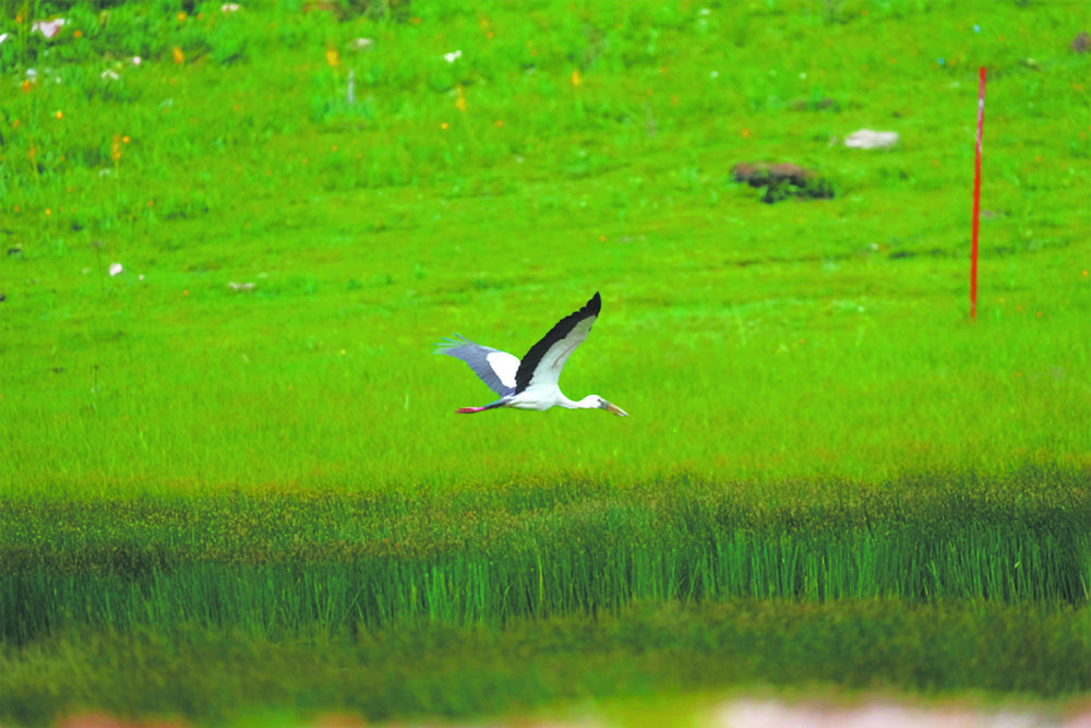 我國(guó)于2006年在云南大理首次記錄到鉗嘴鸛。此次記錄到鉗嘴鸛的玉樹(shù)地區(qū)海拔超過(guò)3800米,為該物種分布最高海拔記錄,填補(bǔ)了鉗嘴鸛在高海拔地區(qū)的分布空白,進(jìn)一步擴(kuò)大了鉗嘴鸛在我國(guó)的分布范圍。