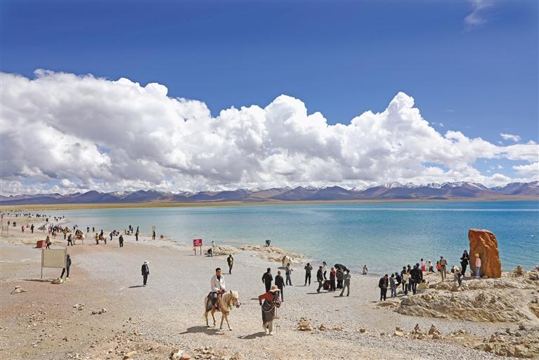 圖為游人在納木錯觀光。記者 格桑倫珠 攝