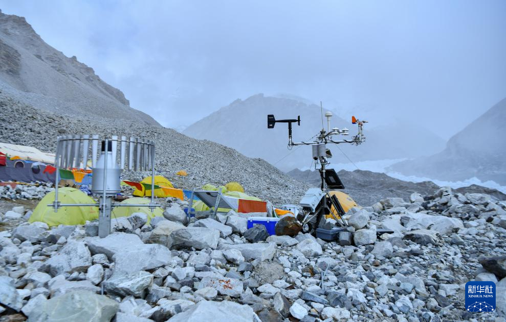位于海拔5700米卓奧友峰前進營地的自動氣象站(9月29日攝)。新華社記者晉美多吉 攝