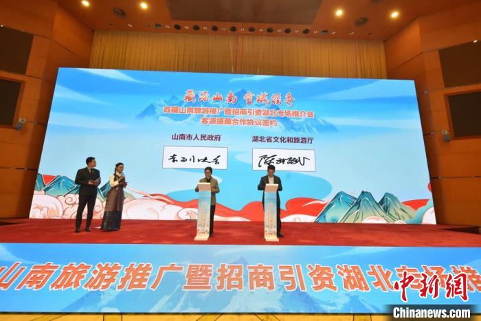 山南市人民政府和湖北省文化和旅游廳進(jìn)行客源援藏合作協(xié)議簽約。郭瑞鳴 攝