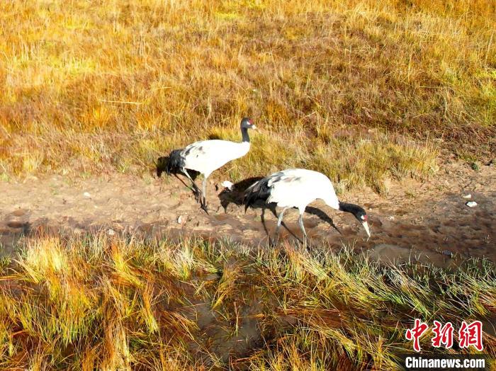 圖為黑頸鶴結(jié)伴覓食。桑吉才讓 攝