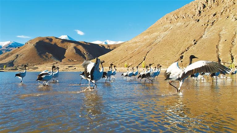 近年來(lái),西藏不斷加大黑頸鶴生存環(huán)境保護(hù)力度,黑頸鶴數(shù)量呈現(xiàn)逐年遞增的良好態(tài)勢(shì)。10月21日,記者從林周縣了解到,黑頸鶴“先遣隊(duì)”已抵達(dá)林周縣,開(kāi)啟越冬模式。首批到達(dá)林周的黑頸鶴共有58只,主要棲息在虎頭山水庫(kù)和卡孜水庫(kù)。
