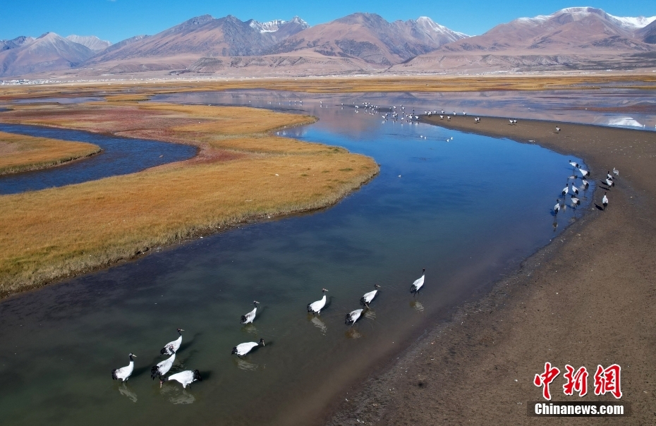 10月23日,成群的黑頸鶴在拉薩市當(dāng)雄縣阿熱濕地內(nèi)覓食。黑頸鶴是全球十五種鶴類中,唯一在高原地區(qū)繁殖和越冬的鶴類,屬中國國家一級保護(hù)野生動物。 [詳細(xì)]