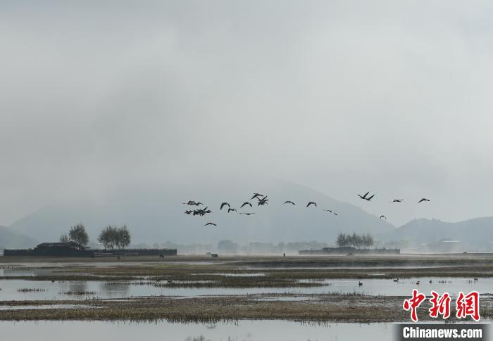 圖為10月31日,一群候鳥在納帕海上空盤旋。黃興鴻 攝