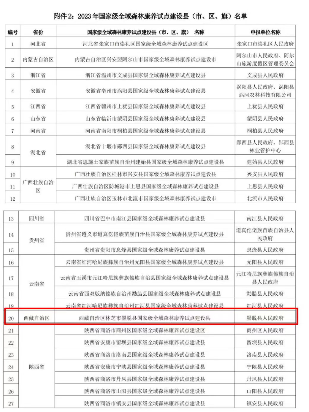 西藏唯一!墨脫縣入選2023年國家級(jí)全域森林康養(yǎng)試點(diǎn)建設(shè)縣