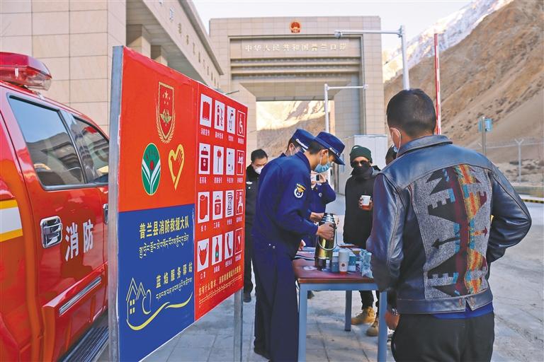 為進(jìn)一步提高入境外籍游客和商人的消防安全意識(shí),展示可信、可愛、可敬的良好消防形象,連日來,西藏消防救援總隊(duì)相繼在日喀則市吉隆口岸、樟木口岸,阿里地區(qū)普蘭口岸設(shè)立“雪域藍(lán)焰”服務(wù)驛站,開展“三語”(中文、英文、藏文)消防安全宣傳活動(dòng),為繁榮“口岸經(jīng)濟(jì)”、推進(jìn)固邊興邊富民工作提供堅(jiān)實(shí)的安全保障。