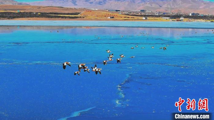 高原冬日,在位于青海湖北岸的青海省海北藏族自治州海晏縣境內(nèi),成群的赤麻鴨、綠頭鴨等鳥類現(xiàn)身青海省東大灘水庫(kù),它們時(shí)而“泡湯”洗浴,時(shí)而振翅高飛,時(shí)而覓食嬉戲,展現(xiàn)出一幅冬日和諧的美好畫面。近年來(lái),越來(lái)越多鳥類來(lái)到青海湖北岸覓食休憩,此時(shí)一半冰層一半碧波的東大灘水庫(kù)成了鳥類覓食的好去處。