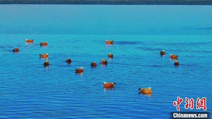 青海海晏成群鳥類東大灘水庫(kù)“泡湯”嬉戲