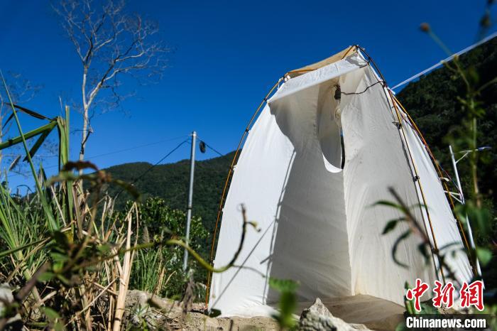12月20日,墨脫生物多樣性西藏自治區(qū)野外科學(xué)觀測站在戶外設(shè)置用于誘捕趨光昆蟲的設(shè)備。中新社記者 江飛波 攝