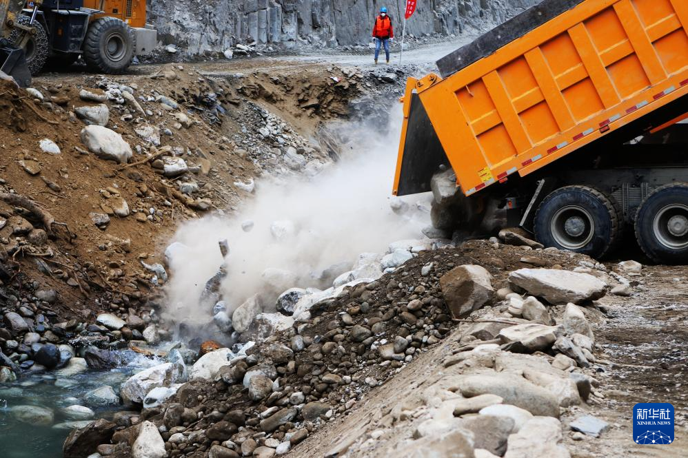 大唐扎拉水電站截流施工現(xiàn)場(1月3日攝)。新華社記者 關(guān)明輝 攝