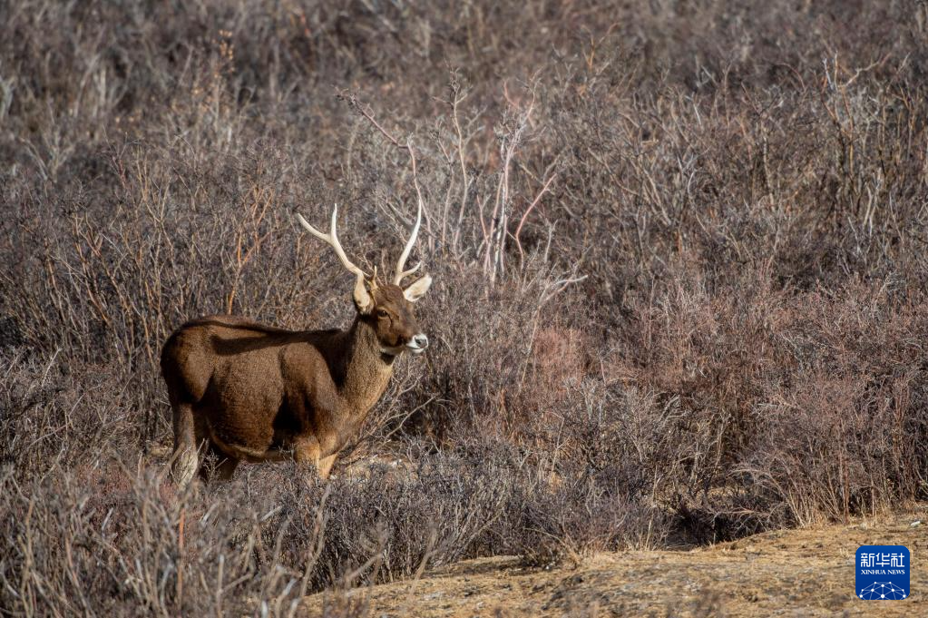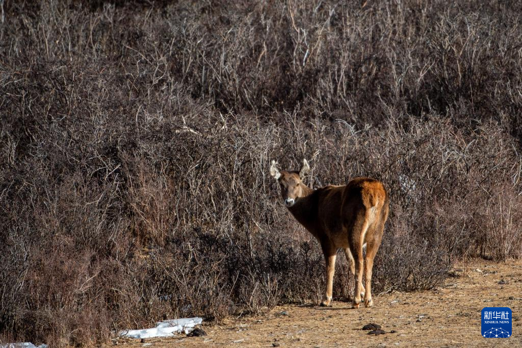 西藏山南市桑日西藏馬鹿縣級自然保護區(qū)內的西藏馬鹿(1月14日攝)。新華社記者 旦增尼瑪曲珠 攝