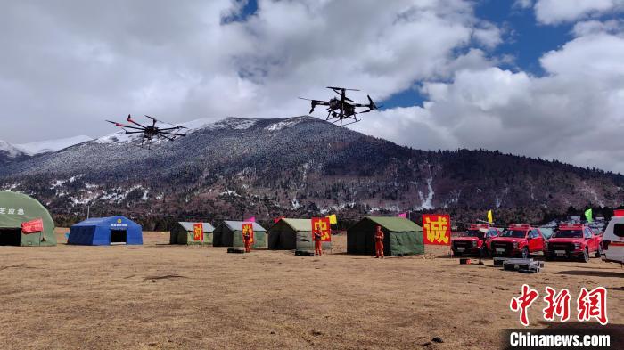 圖為拉練中開(kāi)展無(wú)人機(jī)群編隊(duì)飛行訓(xùn)練。西藏林芝市森林消防支隊(duì)供圖