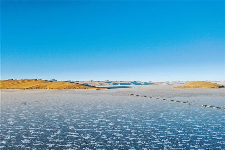 圖為結(jié)冰的山南市浪卡子縣普姆雍錯一角。(資料圖片)記者 潘多 攝
