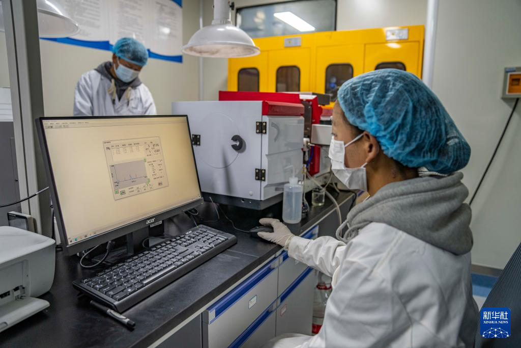 在聶榮縣嘎確生態(tài)畜牧業(yè)發(fā)展有限責任公司,檢驗員達娃卓瑪在檢測奶制品(5月13日攝)。新華社記者 孫非 攝