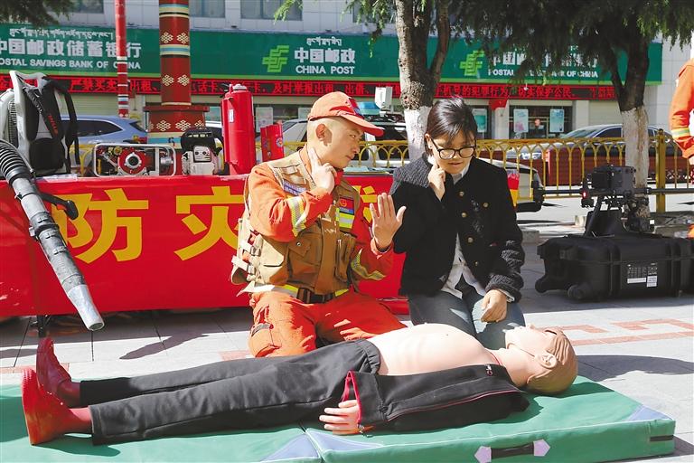 此外,西藏森林消防總隊還派出多支執(zhí)勤分隊,走進全區(qū)各地街道、社區(qū)、商鋪,通過設(shè)置救援裝備展示區(qū)、消防知識宣傳點、發(fā)放防災減災知識手冊、贈送消防宣傳文創(chuàng)產(chǎn)品等方式為廣大群眾講解防災避險基本常識及應急自救知識。期間,執(zhí)勤隊員還在宣傳點現(xiàn)場組織安全知識有獎競答,通過答題可獲得紙巾、水杯、袋子等消防文創(chuàng)紀念品,大大提升了群眾共同參與防災減災宣傳的積極性,從社會面營造“人人講安全、個個會應急”的良好氛圍。