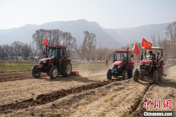 圖為青海省海南藏族自治州貴德縣拉西瓦鎮(zhèn)藏族村民正在進(jìn)行機(jī)械耕作。馬銘言 攝
