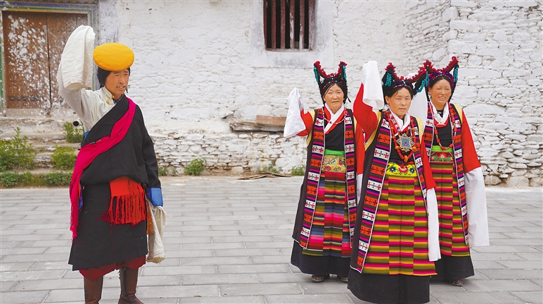 “如今,這支隊(duì)伍已發(fā)展到20多名成員,都是當(dāng)?shù)厝罕?。藝術(shù)隊(duì)經(jīng)常受邀參加各種大小晚會(huì)、重要節(jié)日演出和赴區(qū)內(nèi)外非遺展演等,其影響力和傳播力不斷提升,特別是甲瑪諧欽《和親路》受到廣泛歡迎?!奔赚斷l(xiāng)工作人員德吉卓嘎說(shuō)。