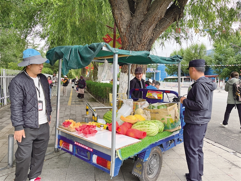 “我們從每日早上10點(diǎn)至晚上11點(diǎn),對(duì)布達(dá)拉宮南門(mén)、宗角祿康東門(mén)采取值班執(zhí)勤等方式進(jìn)行不間斷盯守,同時(shí)加強(qiáng)城管執(zhí)法大隊(duì)日常路段巡查力度,進(jìn)一步鞏固整治工作成效,提高監(jiān)管效率,形成規(guī)范化和長(zhǎng)效化的城市管理機(jī)制,共創(chuàng)文明有序的市容環(huán)境。”布達(dá)拉宮周邊亂象專項(xiàng)整治工作專班成員常春告訴記者。