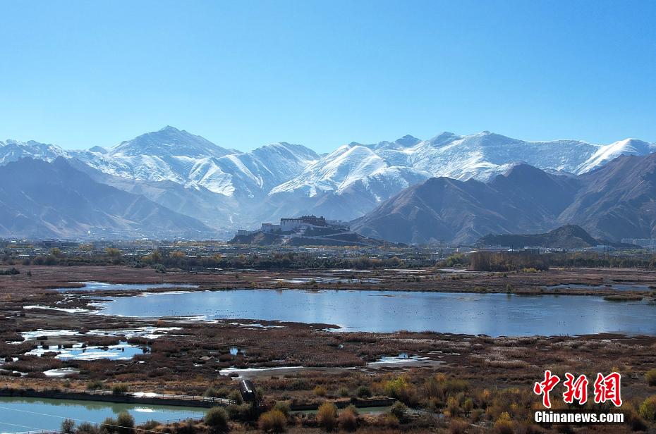 位于西藏拉薩的拉魯濕地國家級自然保護區(qū)是目前世界上海拔最高的城市內陸天然濕地,保護區(qū)總面積12.2平方公里,被譽為“拉薩之肺”。初冬時節(jié),拉魯濕地與遠處的布達拉宮、周圍的雪山構成一幅壯美畫卷。圖為11月8日,拉魯濕地景色。(無人機照片)
