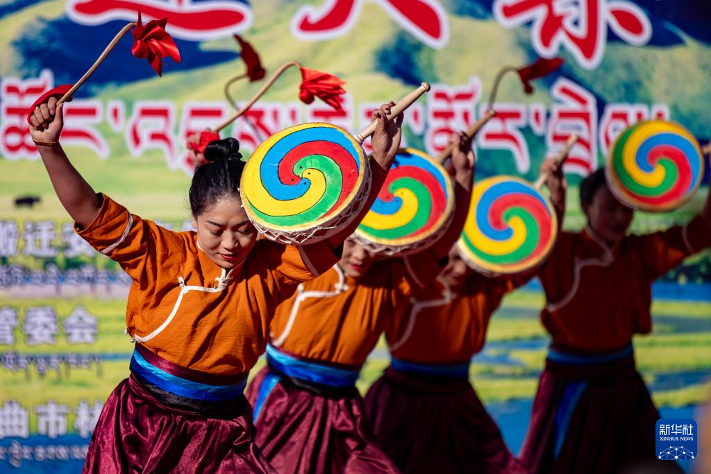 12月17日,森布日生態(tài)搬遷安置點居民在“物交會”開幕式上表演傳統(tǒng)舞蹈。新華社記者 姜帆 攝