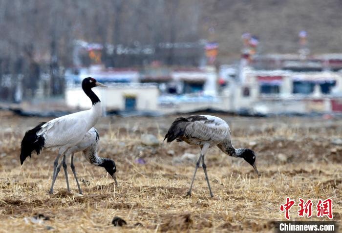 黑頸鶴是全球十五種鶴類中唯一在高原地區(qū)繁殖和越冬的鶴類,被譽(yù)為“高原神鳥”,屬中國(guó)國(guó)家一級(jí)保護(hù)動(dòng)物。每年10月中下旬左右,黑頸鶴陸續(xù)飛抵雅魯藏布江中游河谷等地越冬。圖為3月8日,西藏拉薩林周縣黑頸鶴保護(hù)區(qū),黑頸鶴在田間覓食。中新社記者 李林 攝