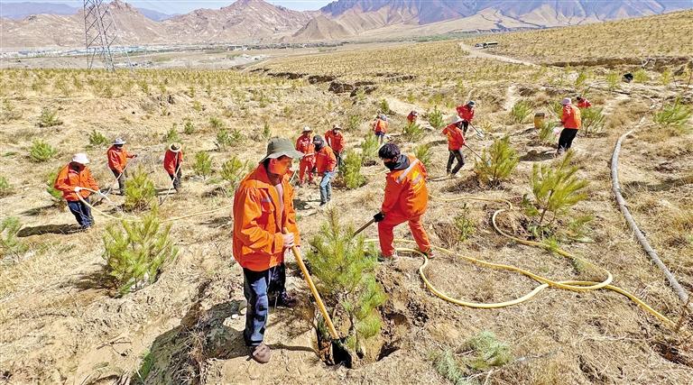圖為4月3日,拉薩市堆龍德慶區(qū)德陽(yáng)村的植樹(shù)造林現(xiàn)場(chǎng)。記者 白瑪澤旺 攝