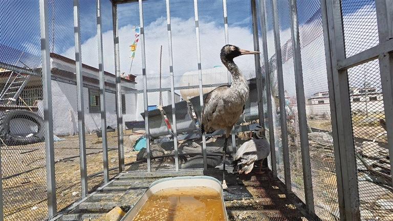 每年越冬季最讓頓珠次仁擔(dān)憂的并不是天氣的惡劣,而是每年都會(huì)有受傷的黑頸鶴。今年年初,兩只受傷的黑頸鶴先后出現(xiàn)在他的視野中,他帶回家后精心地照顧著它們,為它們準(zhǔn)備溫暖舒適的棲息之所,每日提供新鮮、可口的食物,還時(shí)刻關(guān)注著它們的傷勢(shì)變化。