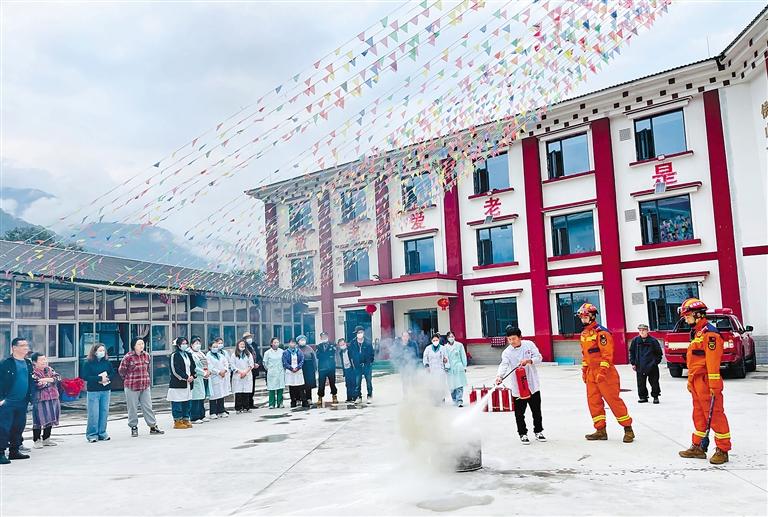 林芝市墨脫縣消防救援大隊(duì)宣傳人員走進(jìn)養(yǎng)老機(jī)構(gòu),現(xiàn)場(chǎng)演示滅火器的使用方法,并進(jìn)行實(shí)操演練。通訊員 才旺多吉 攝