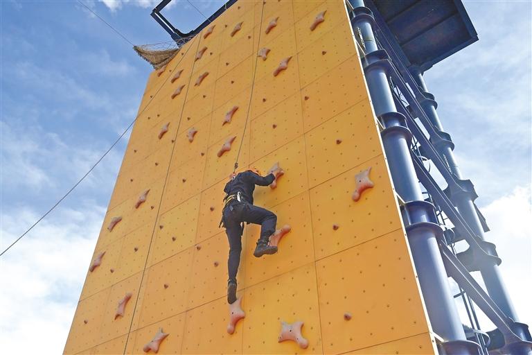 林芝市波密縣森林消防中隊(duì)邀請(qǐng)縣公安局民警體驗(yàn)攀巖和繩索救援相關(guān)科目。記者 謝筱純 劉楓 通訊員 晉美 攝