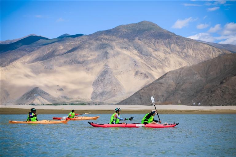 水上皮劃艇項目起點位于桑耶渡口,終點是雅魯藏布江觀景臺。這里江面寬8至12公里,是雅魯藏布江的最寬處,北接國家4A級旅游景區(qū)桑耶寺,南臨第一莊園朗塞嶺,是絕佳的觀景、拍攝地。最后的越野跑項目沿著雅魯藏布江邊進行。
