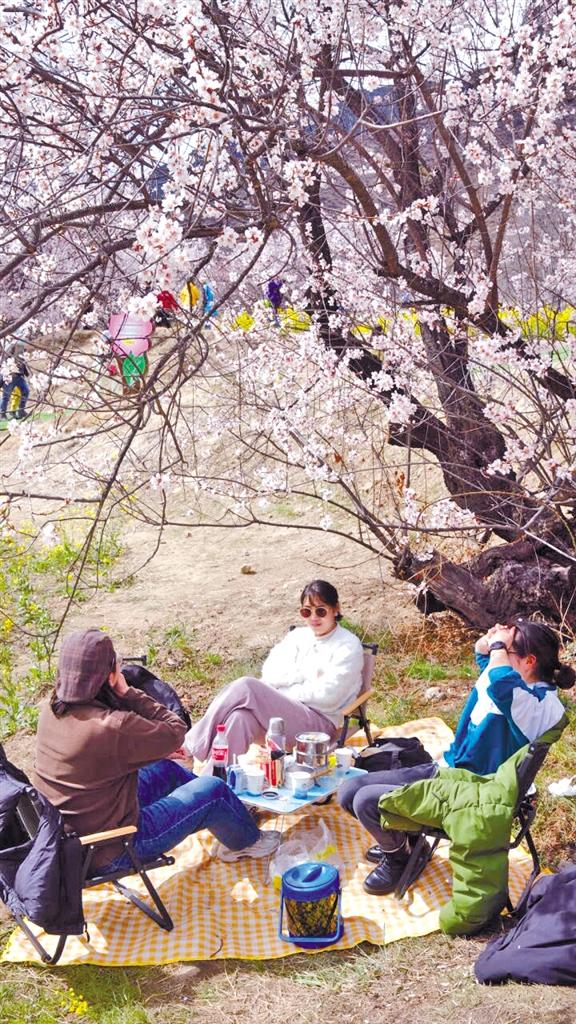 群眾在林芝市巴宜區(qū)林芝鎮(zhèn)嘎拉村的桃花樹下過林卡。記者 央拉 攝